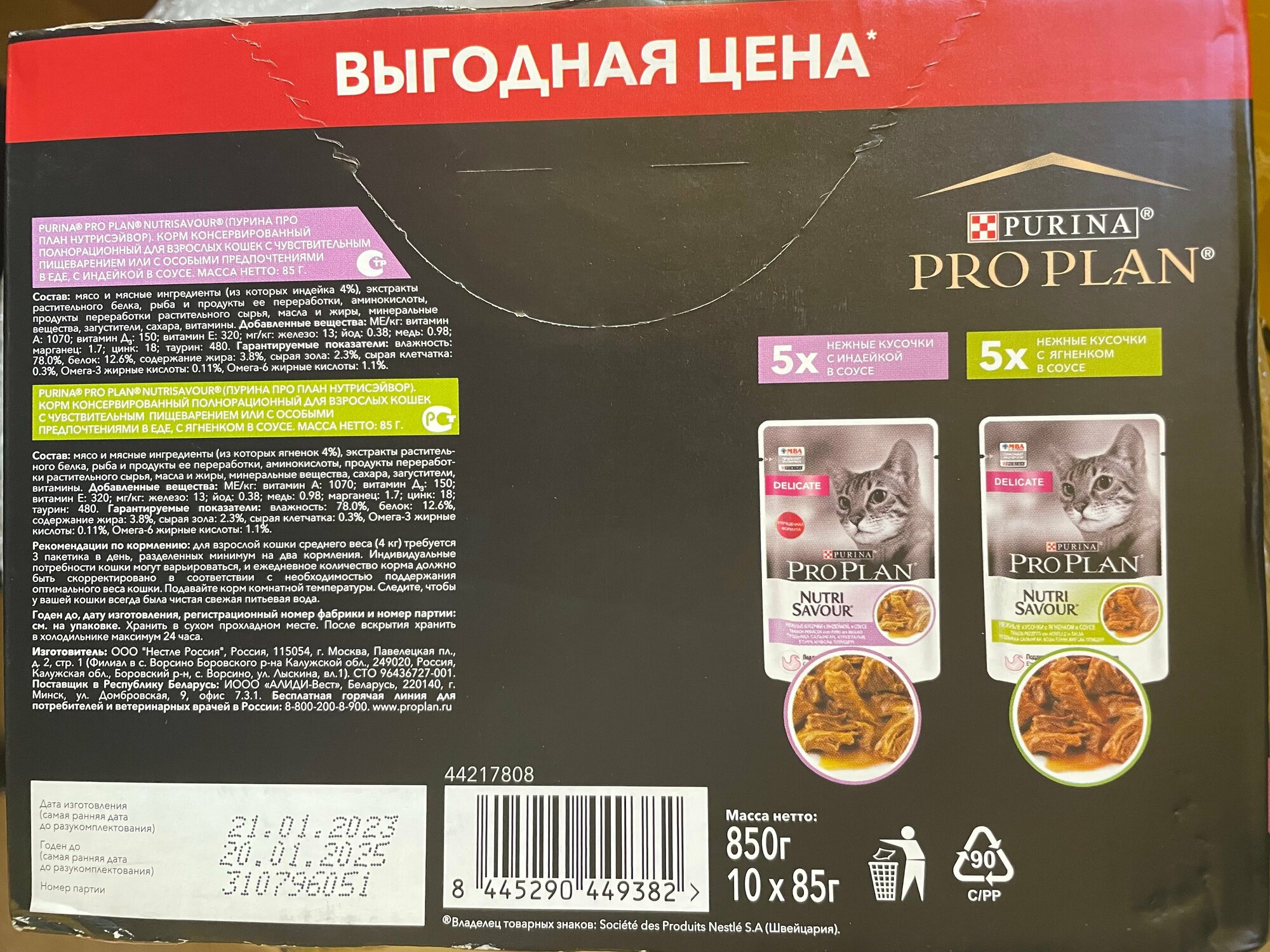 Ниже Вы можете прочитать отзывы на Pro Plan влажный корм для кошек, чувствительное пищеварение, набор паучей, индейка и ягненок в соусе 10*85 гр, ознакомится с подробными характеристиками, посмотреть интересные обзоры и фотографии на Pro Plan влажный корм для кошек, чувствительное пищеварение, набор паучей, индейка и ягненок в соусе 10*85 гр.