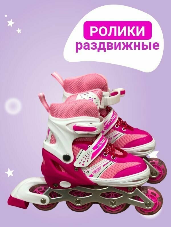 Ролики/ Коньки роликовые POWER SUPER/ Ролики для девочек/ Ролики розовые/ Ролики 31 34 размер