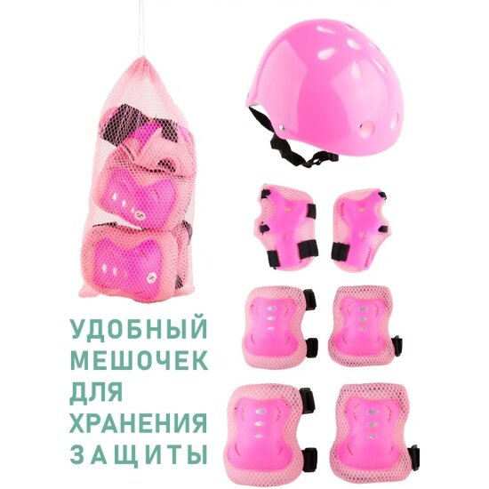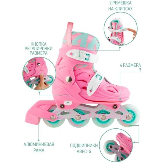 Роликовые коньки COUGAR MZS807PS-QS с защитой и шлемом, размер M(30-33), розовые интересное: