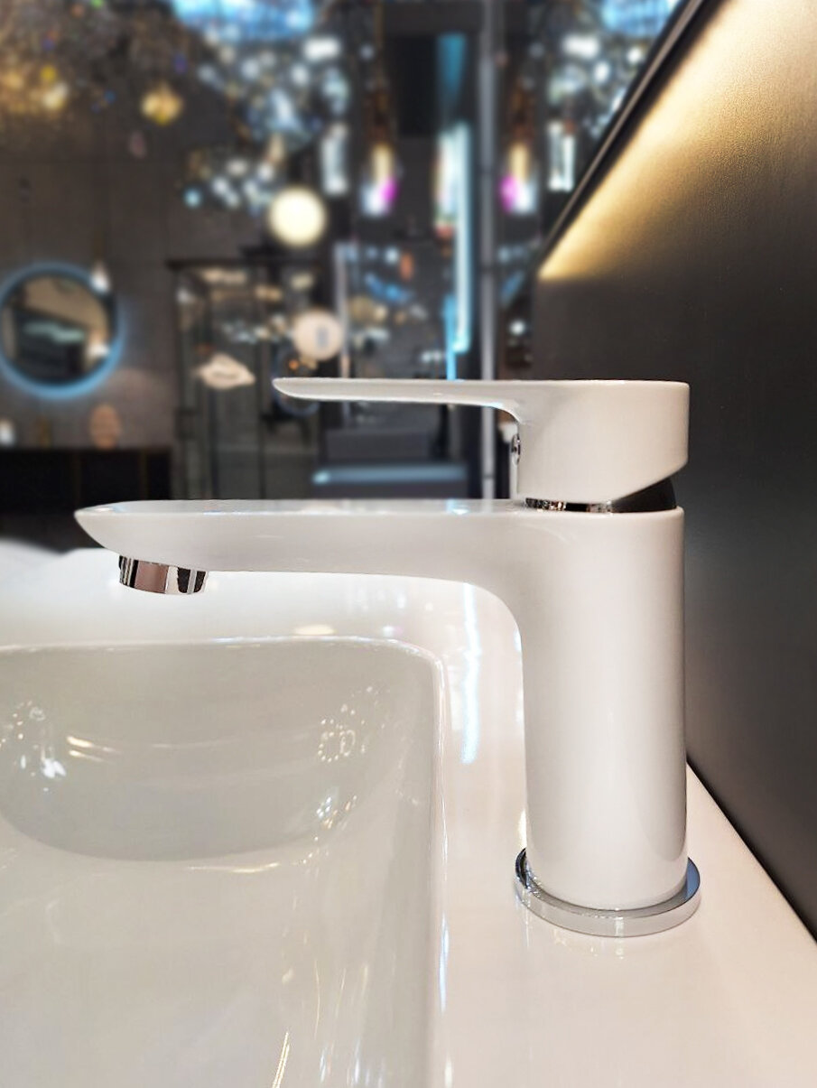 Смеситель для раковины AltroBagno Diretto 0107Bi, латунь, аэратор, белый, фиксированный излив