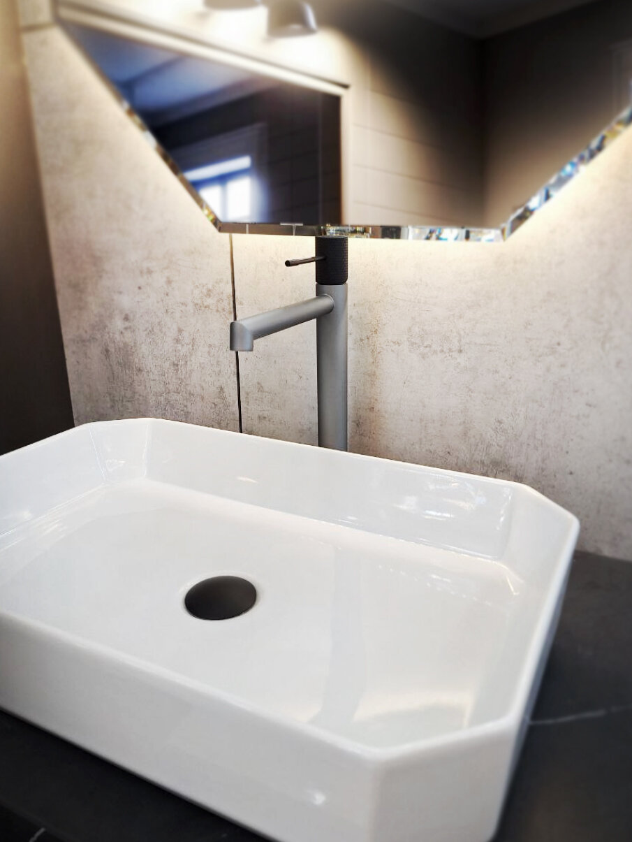 AltroBagno Смеситель для накладной раковины в ванную, белый матовый / хром