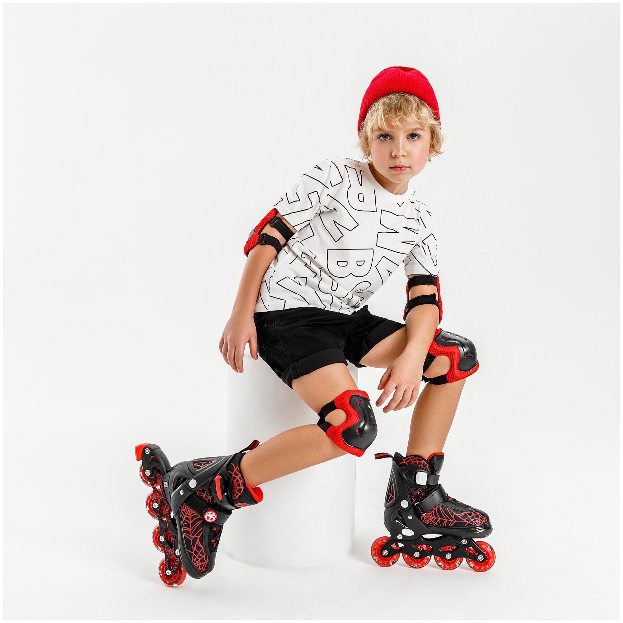 Детские роликовые коньки Amarobaby Spider раздвижные со светящимися колесами черные размер 30-33 (AMARO-35Sp-Bl-30) интересное: