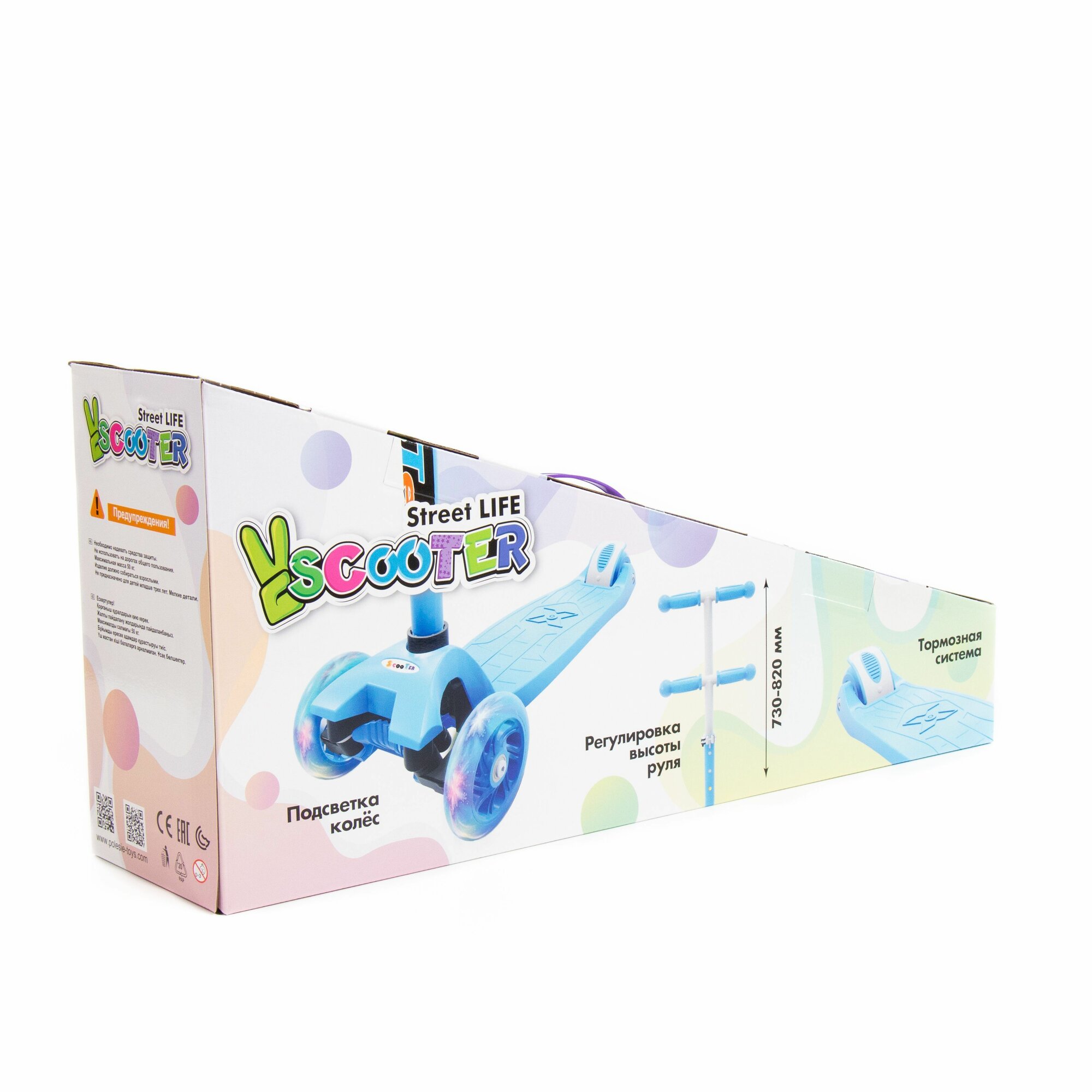 Детский самокат фиолетовый с наклейкой V1 в коробке
