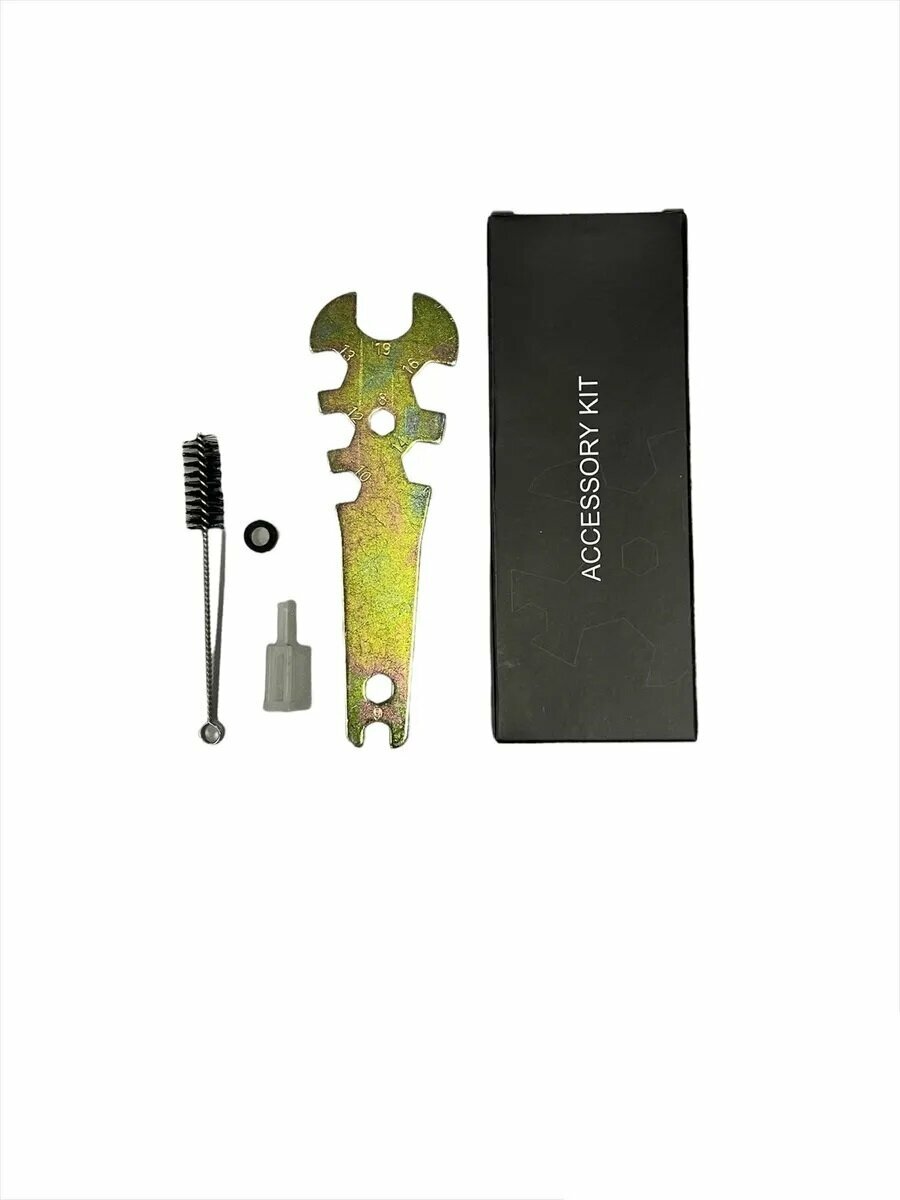 | Комплектация | ключ универсальный, ёршик для чистки краскопульта, 1 фильтр для очистки ЛКМ, регулятор давления воздуха с манометром, штекер с прокладкой, бачок пластиковый. |