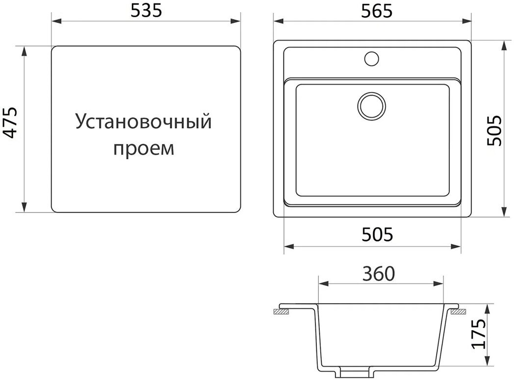 Мойка для кухни GreenStone GRS-06-343, врезная, 565 x 505 мм, антрацит