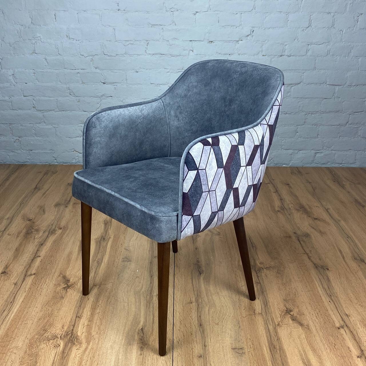 Стул обеденный Кресло мягкая спинка мягкое сиденье обивка текстиль серый ножки бук подлокотники есть кухонный для гостиной 590 530 810 Как для икеа