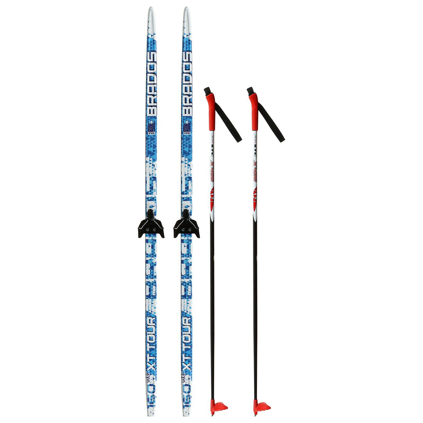 Лыжный комплект с креплениями 75 мм с палками 150 STEP Brados LS Blue