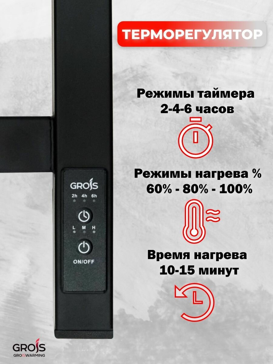 Полотенцесушитель Электрич. с/т GROIS Quartet GR-125 180х1500 П3 RAL 9005 R черный матовый