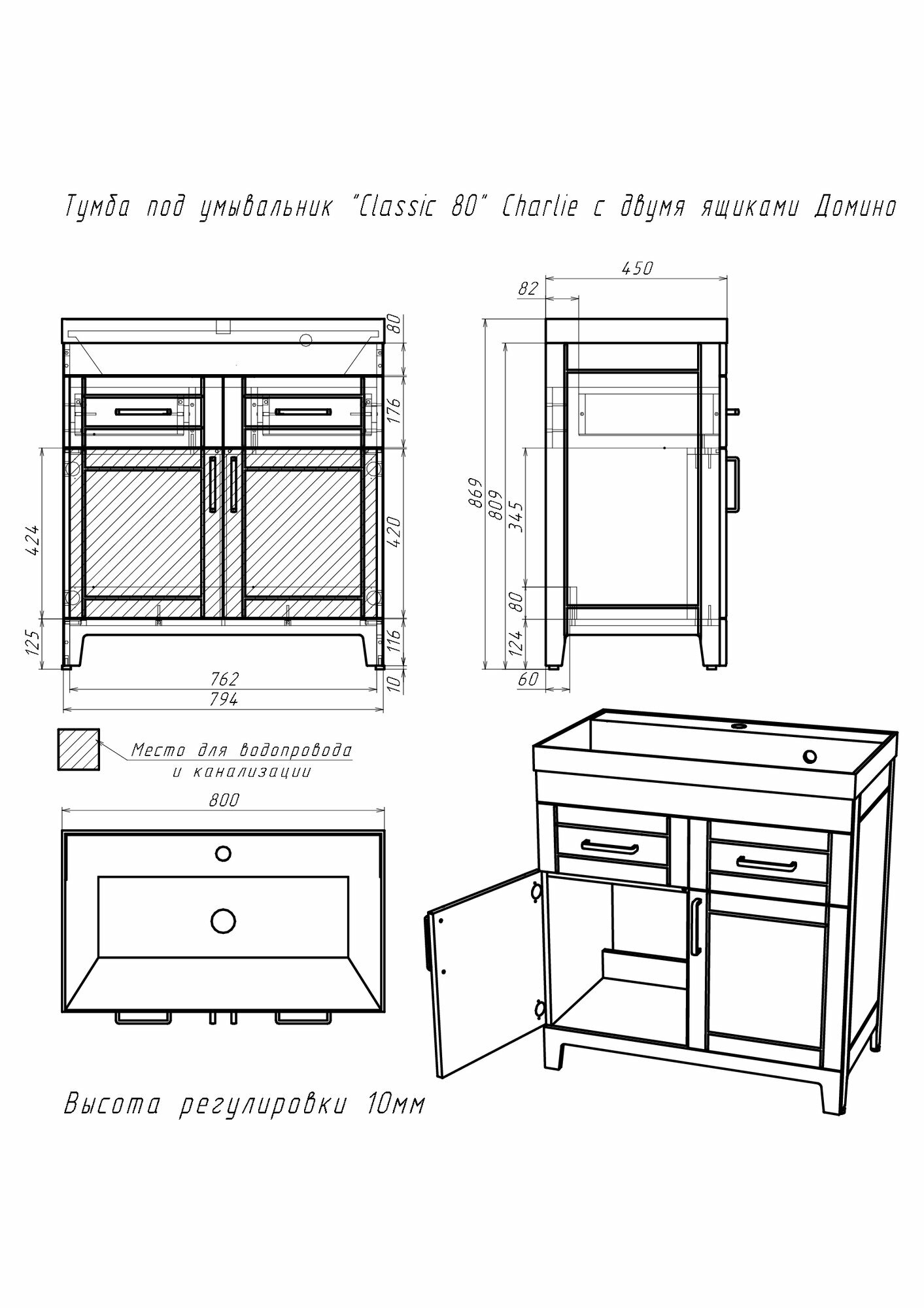 Тумба под умывальник "Classic 80" Charlie с двумя ящиками Домино интересное: