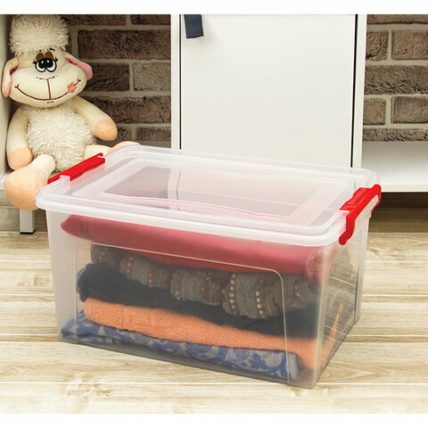 Купить Ящик для хранения универсальный, 25 л, крышка на защелках, 24×48.4×32 см, прозрачный