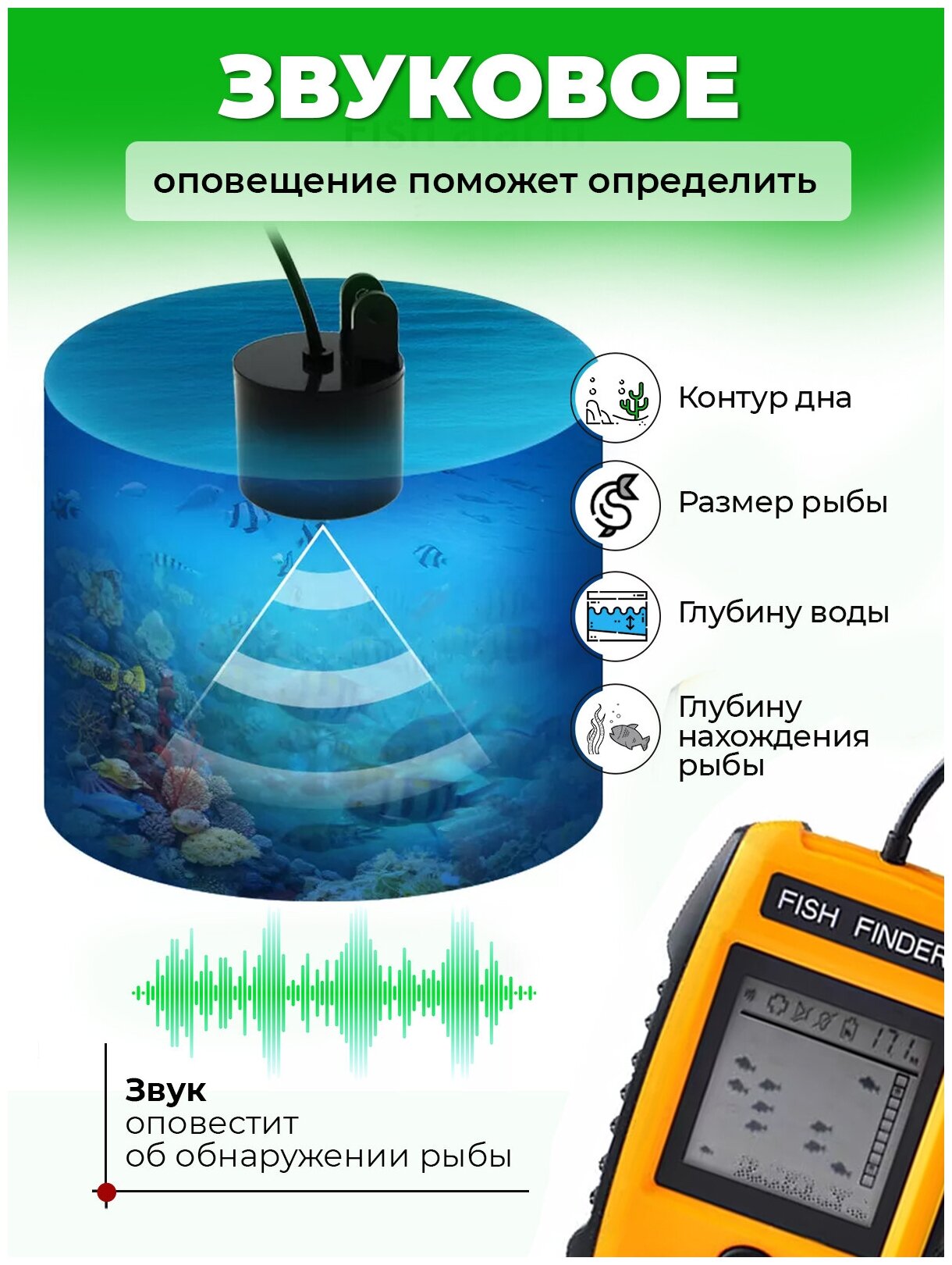 | Определение размера и глубины рыбы | есть |