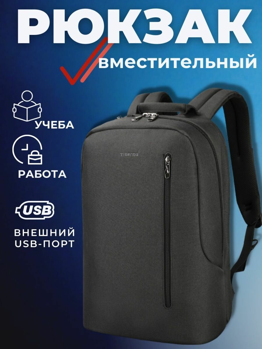 Рюкзак Tigernu T-B3621B, темно-серый, 15.6" интересное: