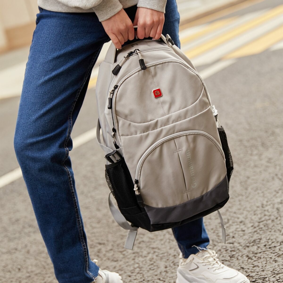 Рюкзак GERMANIUM "S-07" универсальный, уплотненная спинка, облегчённый, светло-серый, 46х32х15 см, 226954 - 1 шт.