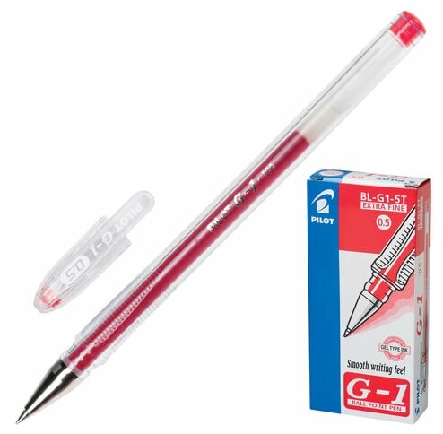 Купить Ручка гелевая PILOT "G-1", красная, корпус прозрачный, узел 0,5 мм, линия письма 0,3 мм, BL-G1-5T 141840