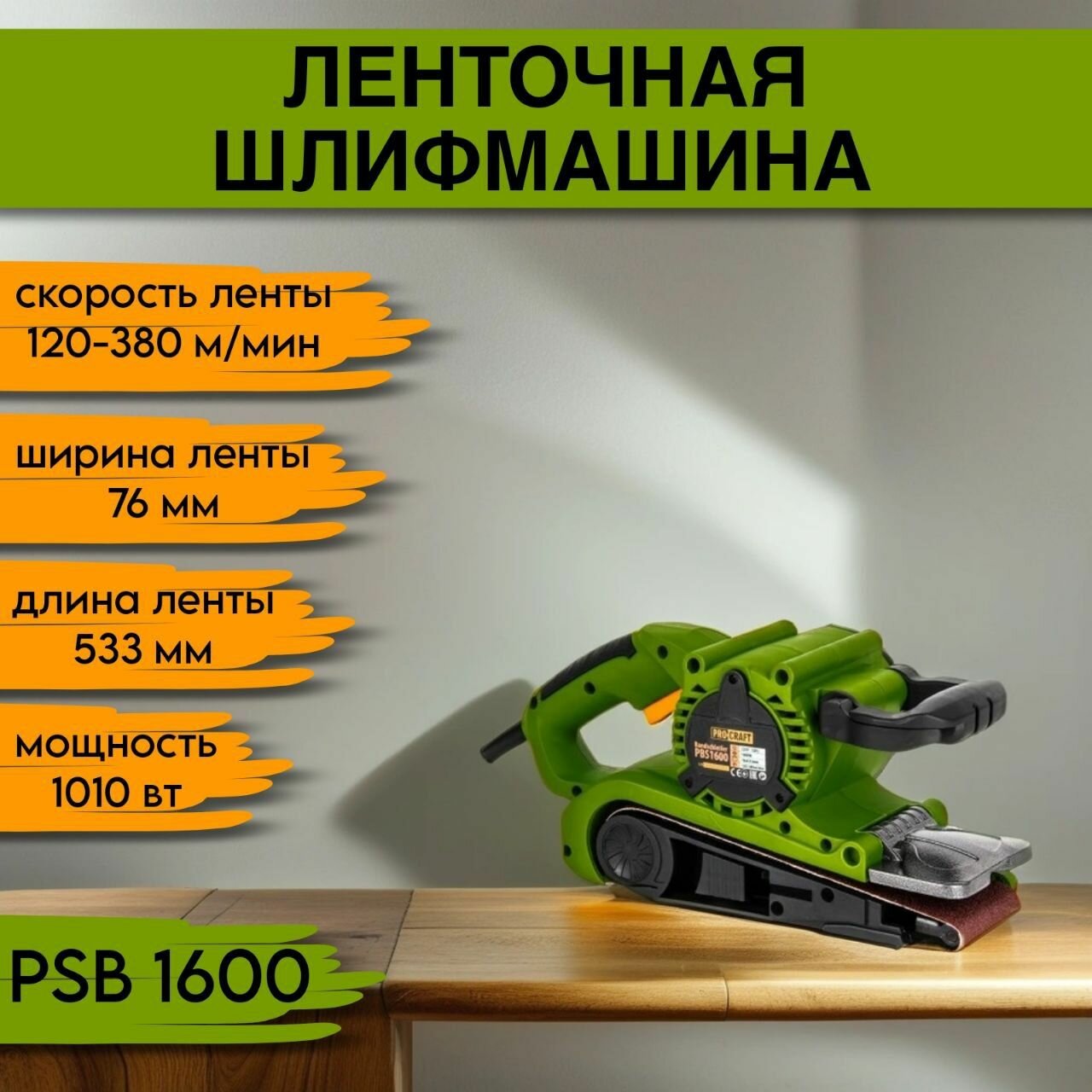 Ленточная шлифмашина ProCraft PBS1600, 1010 Вт