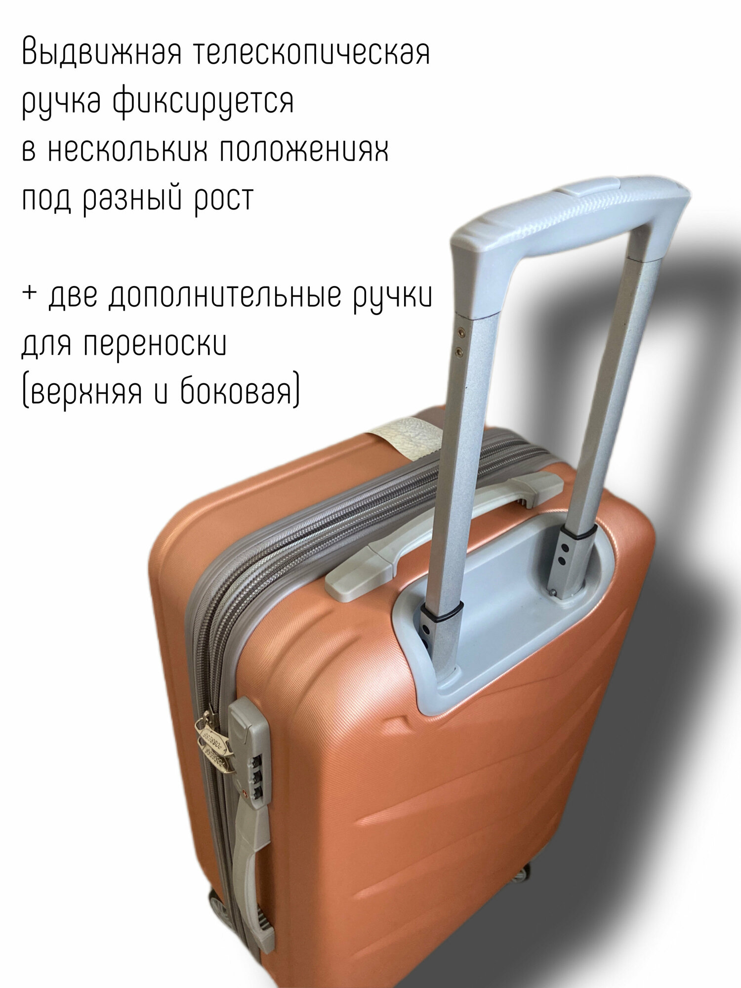 Чемодан на колесах/ручная кладь/42л/поликарбонат/4 съемных колеса/розовый