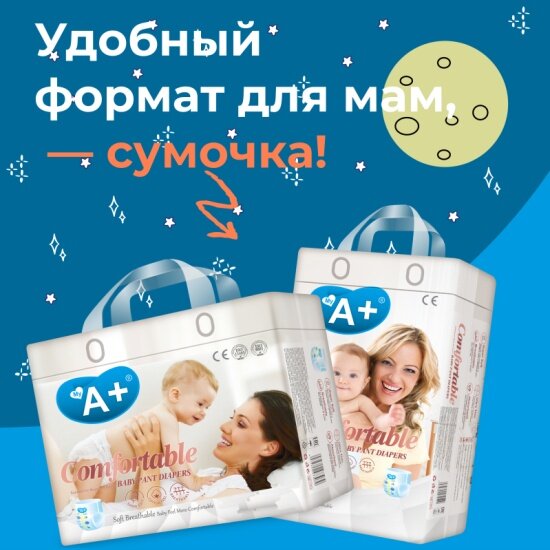 Детские подгузники-трусики My А+ Comfortable, размер S (3-7кг) (34шт/уп)/Q-форма, ультратонкие, мягкий верхний слой Hot Air, с индикатором влажности
