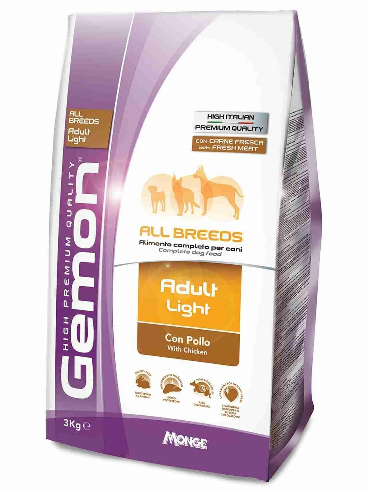 Купить Сухой корм Gemon Dog Light для взрослых собак, всех пород, низкокалорийный, с курицей 3 кг