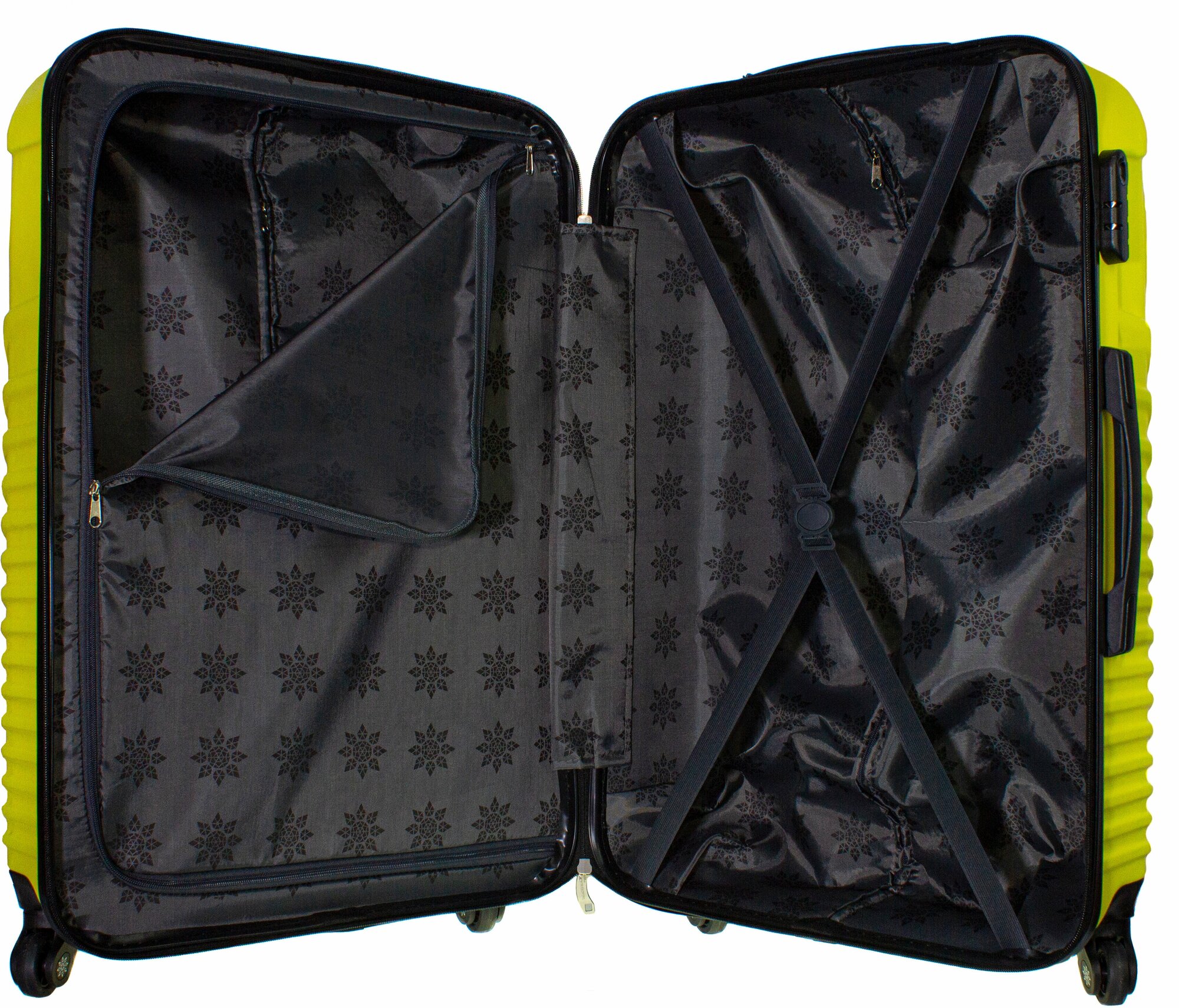 | Плюсы: | Прочный износоустойчивый ABS пластик. За счёт рифления стенки достаточно жёсткие. Лёгкий ход. Кодовый замок. На внутренней обшивке каждой крышки есть молнии, так что можно например поставить изнутри заплатки. |