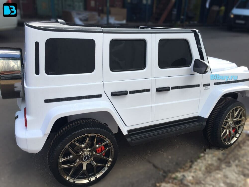 Детский электромобиль Mercedes-AMG G63 (S307) белый (лицензионная модель) с дистанционным управлением, двухместный