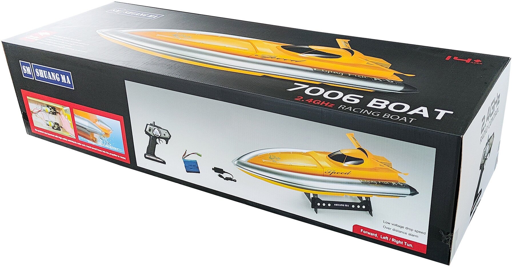 | Комплектация | Катер, аккумулятор(NiMh 2300mAh 12v), зарядное устройство, пульт. |