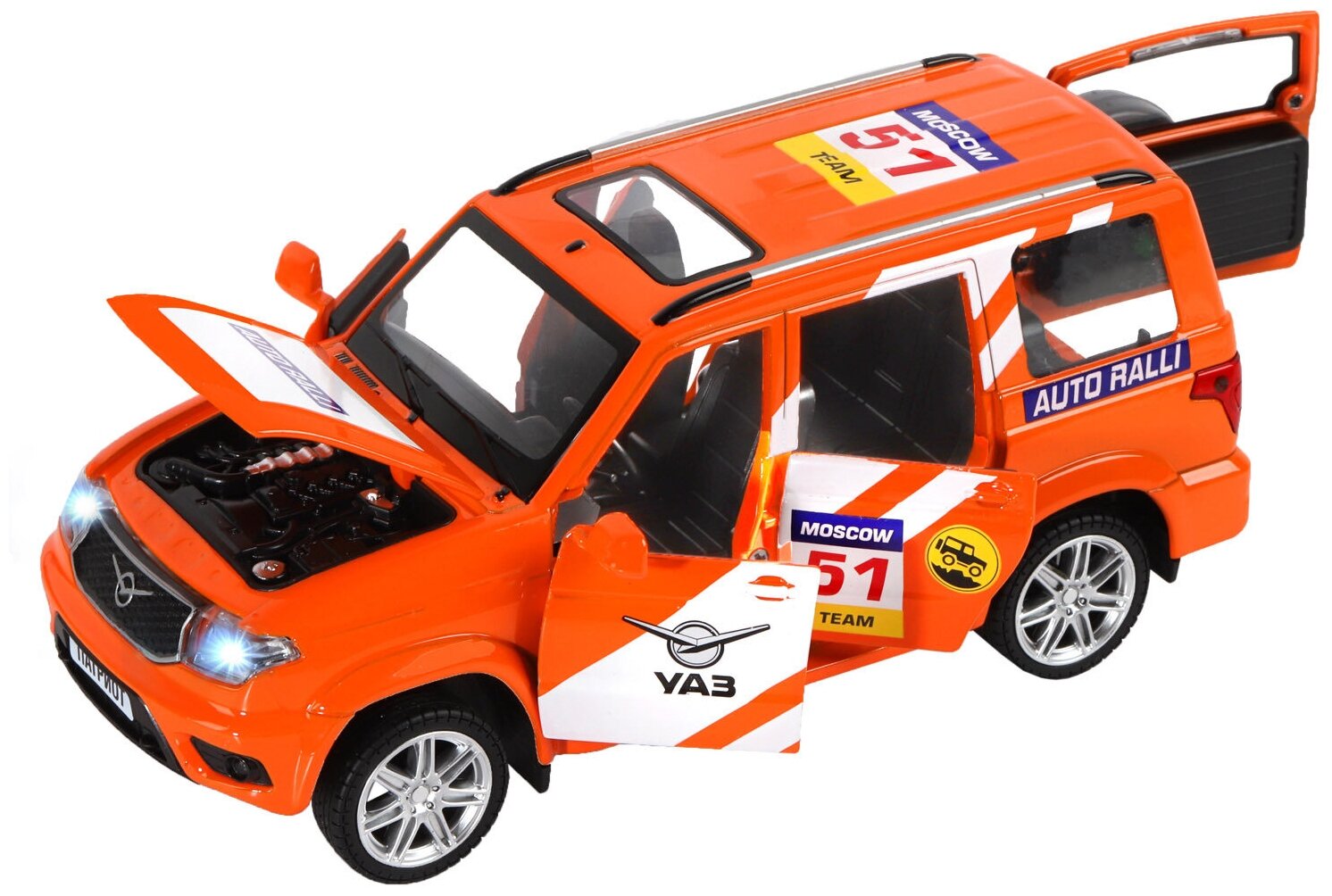 Купить Машина металлическая, инерционная, коллекционная модель УАЗ PATRIOT RALLY масштаб 1:26 свет звук открываются 4 двери