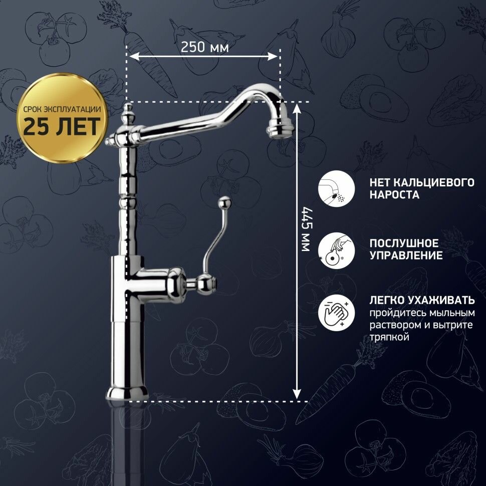 Смеситель для кухни Paini Duomo, арт. 88CR572LLKM, поворотный излив, хром интересное:
