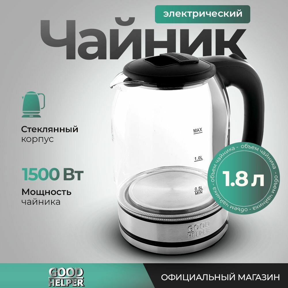 Чайник электрический стеклянный GOODHELPER KG-18B11 / 1,8л