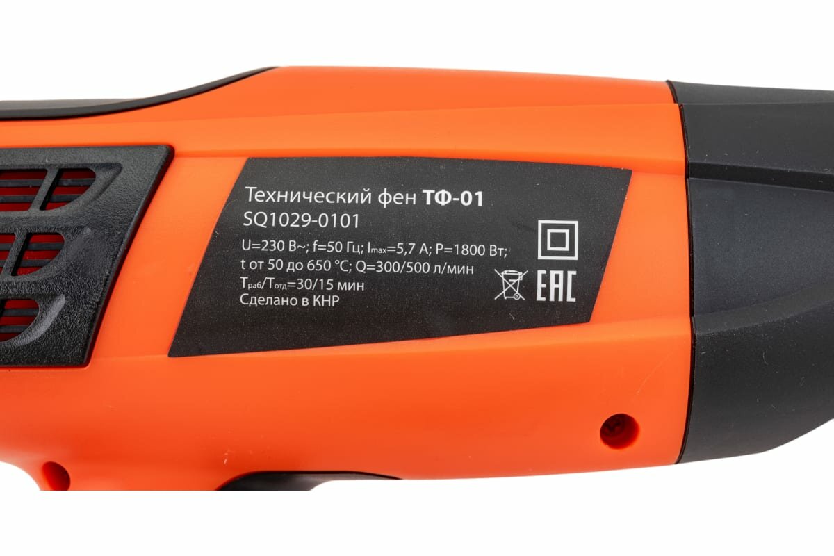 TDM Набор, технический фен ТФ-01 и 6 предметов, мощность 1800 Вт, 2 режима, t от 50 до 650 C,"Алмаз" SQ1029-0101