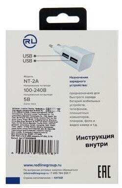 Red Line Сетевое зарядное устройство Red Line NT-2A, 2xUSB, 2.1 А, белое интересное: