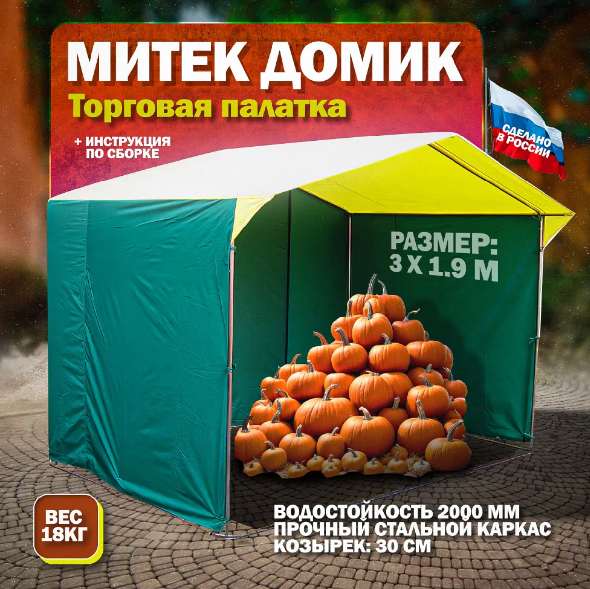 Торговая палатка "Домик" 3.0х1,9 желто-зеленая интересное: