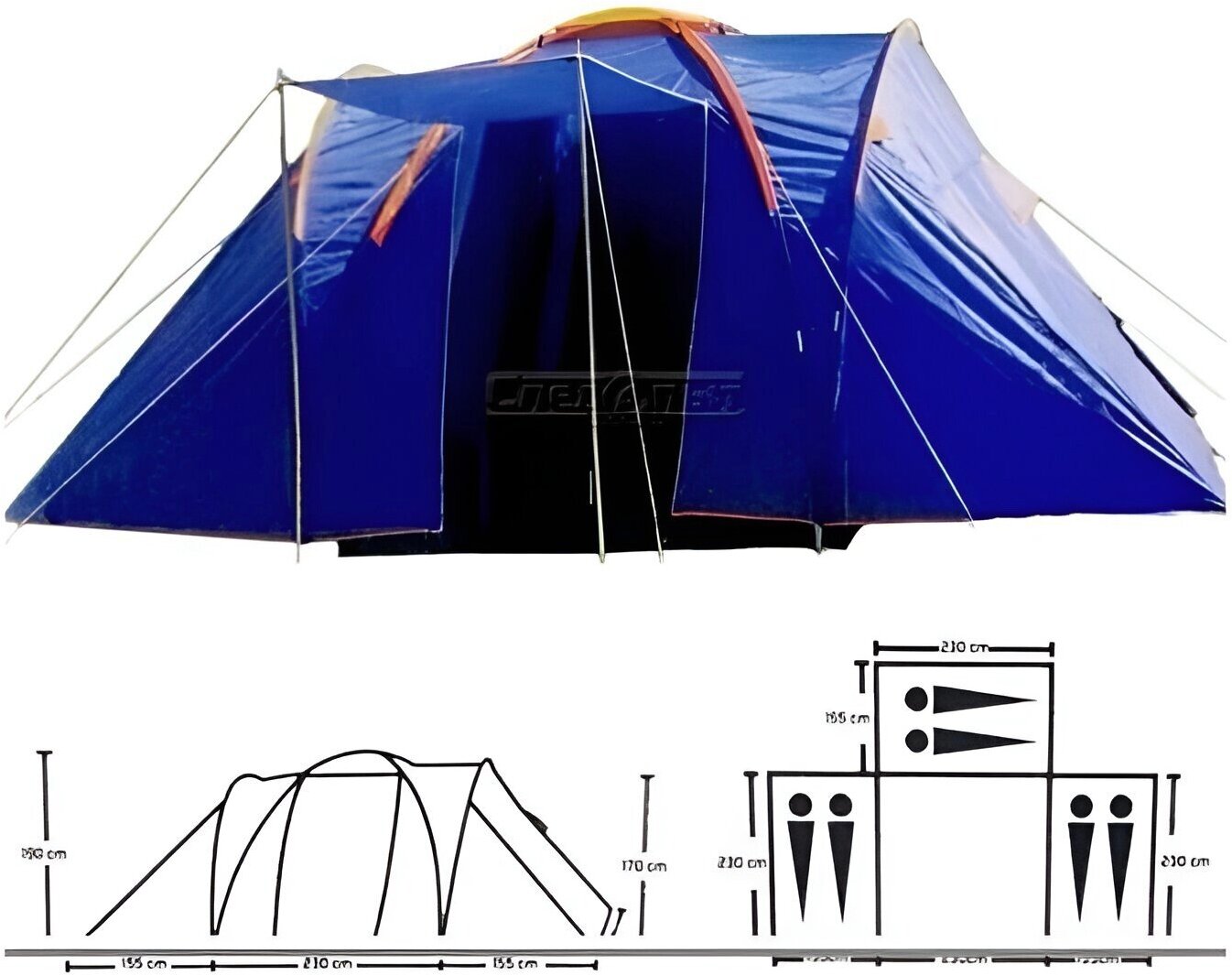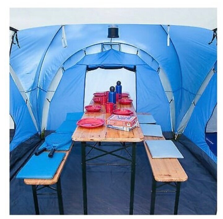 | Минусы: | Нет тента для дна, его необходимо покупать отдельно. Дно внутренних палаток очень тонкое. Состоит из того же материала, что и внешняя палатка. В тамбуре открытая земля,а внутренние палатки очень тонкие, только для сухой погоды, либо нужно стелить тент отдельно |