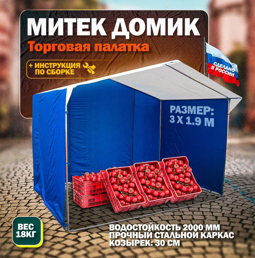 Торговая палатка "Домик" 3.0х1,9 бело-синяя интересное: