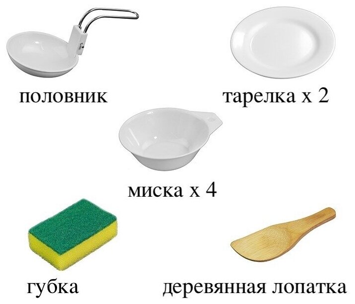 | Дополнительная информация | подробная комплектация: кастрюля 2 л., кастрюля 3л, чайник 1л., сковородка, 4 миски, 2 тарелки, половник, лопатка, губка, чехол.; особенности: складная конструкция |