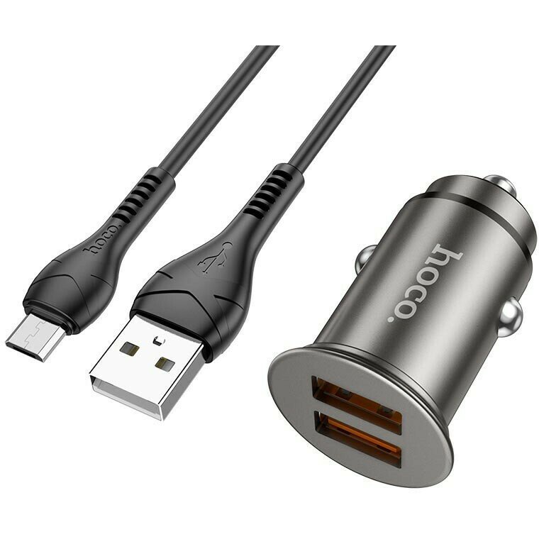 Купить Блок питания автомобильный 2 USB HOCO NZ1, Developer, QC3.0, кабель микро USB, цвет: серый