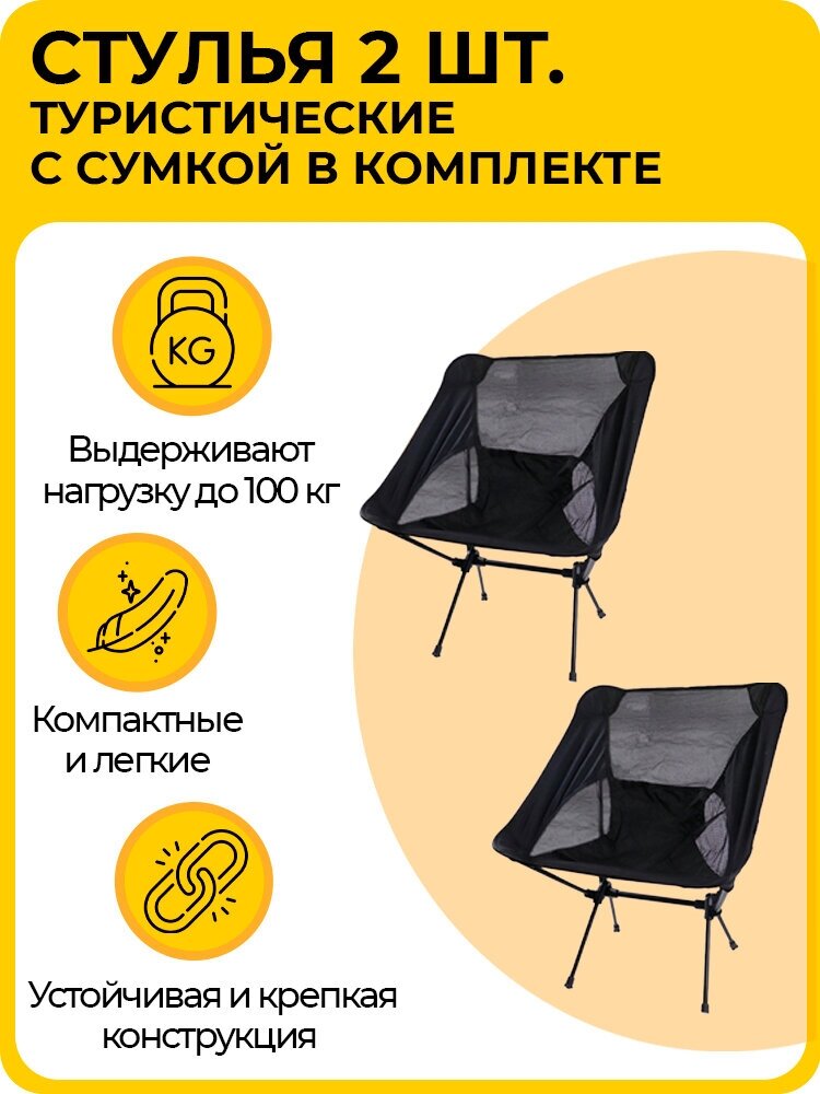 Купить Стул складной туристический, кресло со спинкой, для кемпинга и рыбалки, с сумкой в комплекте, черный, 2 шт
