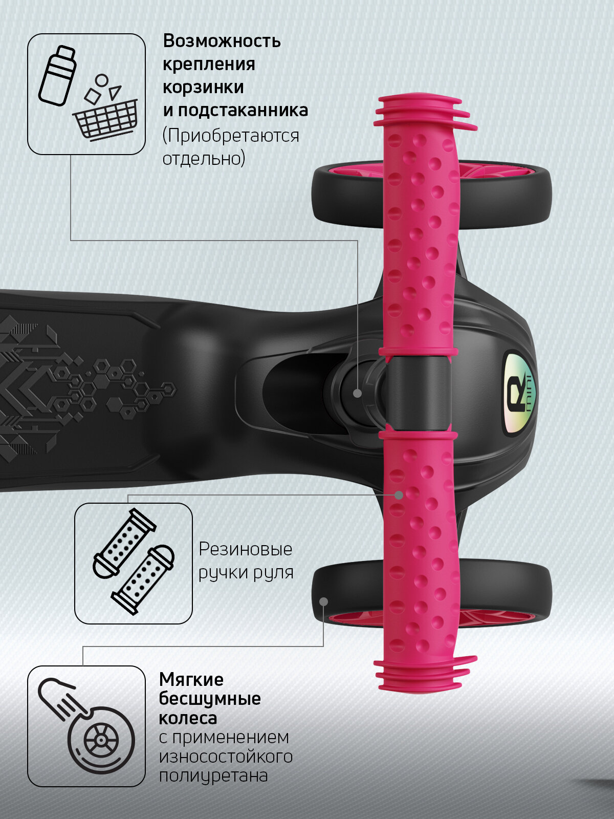 Самокат, самокат трехколесный детский, с цветными колесами и цветными ручками, Buggy Boom Alfa Mini R, маджента