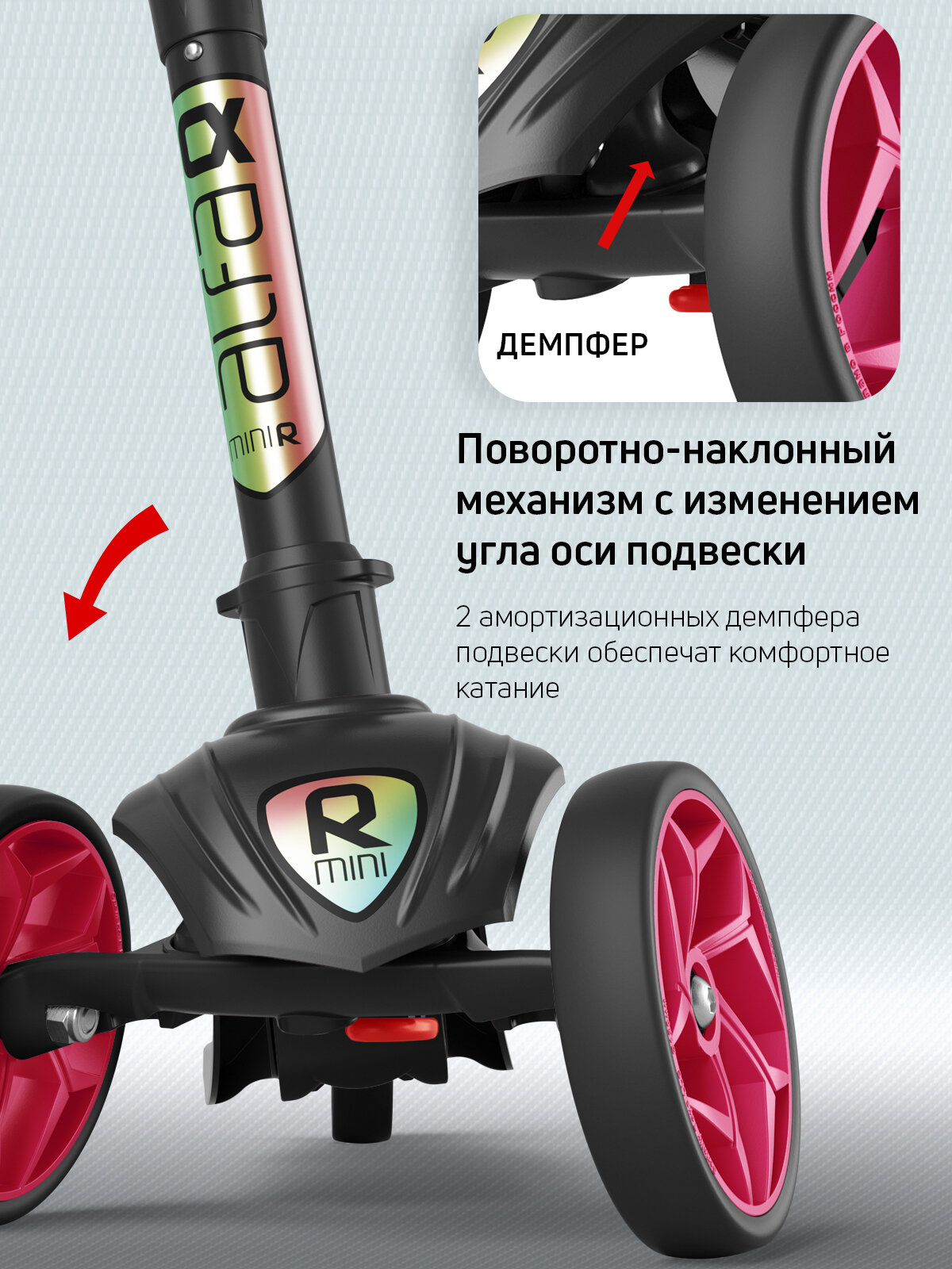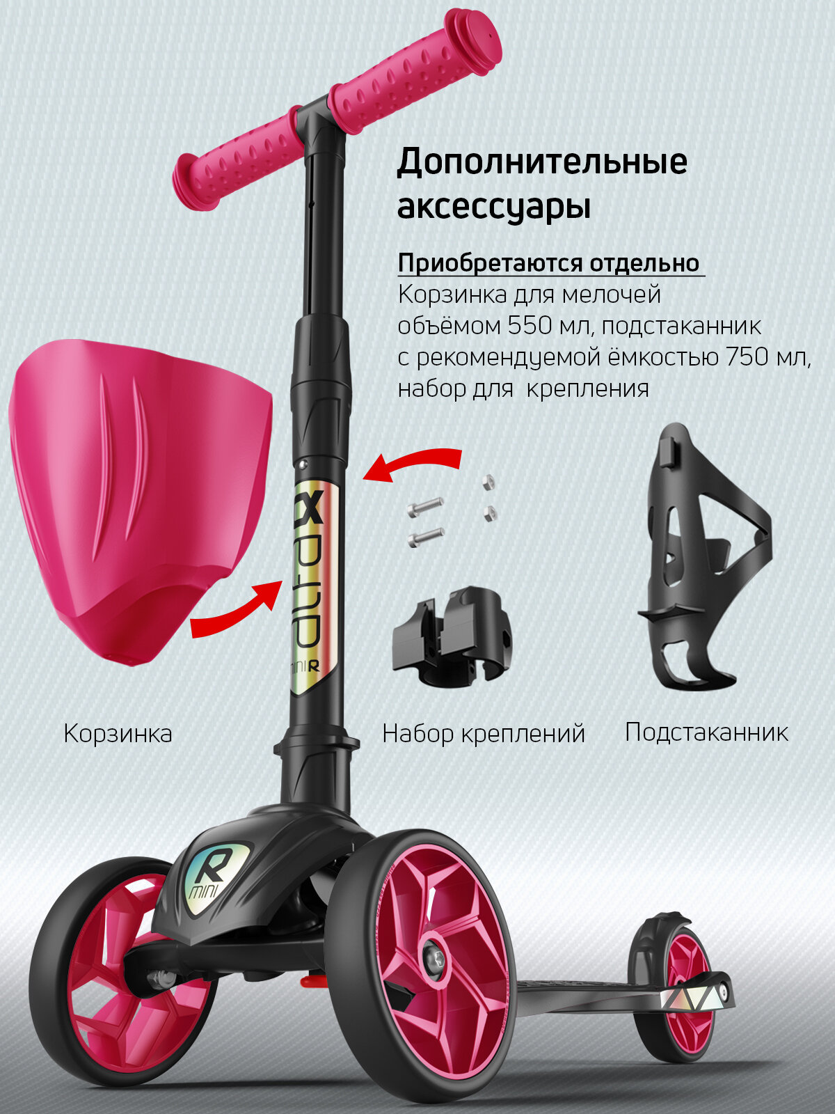 Самокат, самокат трехколесный детский, с цветными колесами и цветными ручками, Buggy Boom Alfa Mini R, ягодный сорбет