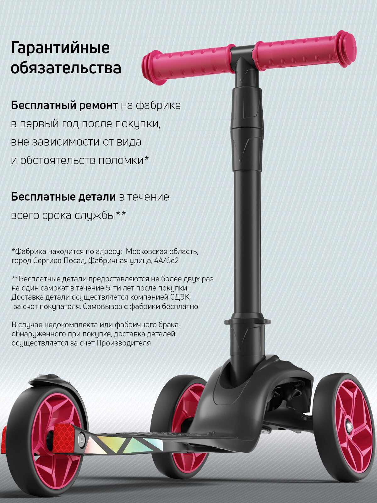 СохранитьСамокат, самокат трехколесный детский, с цветными колесами и цветными ручками, Buggy Boom Alfa Mini R, рубиновый интересное: