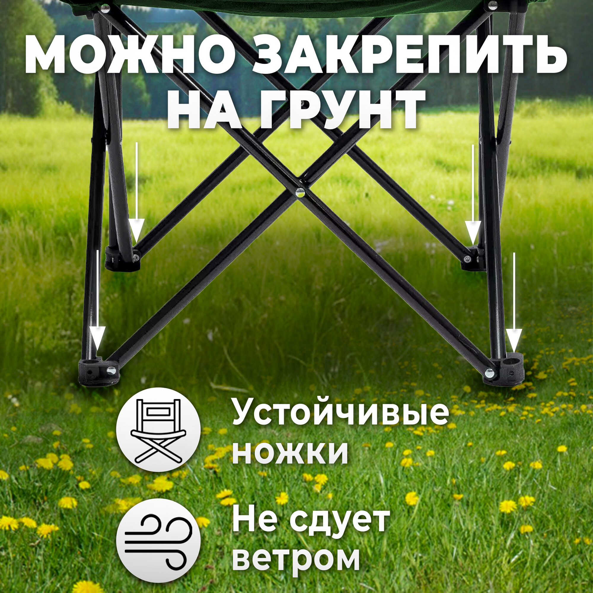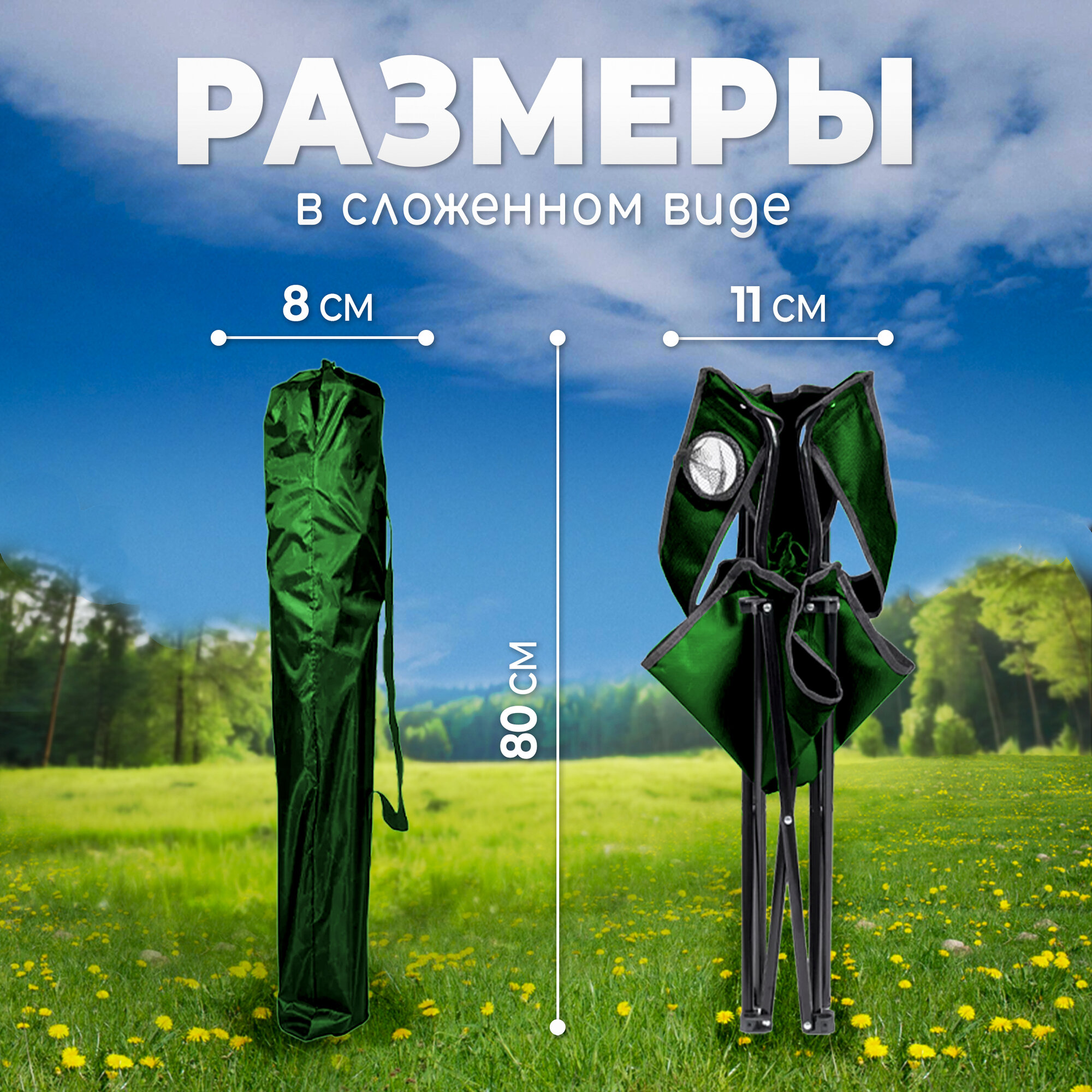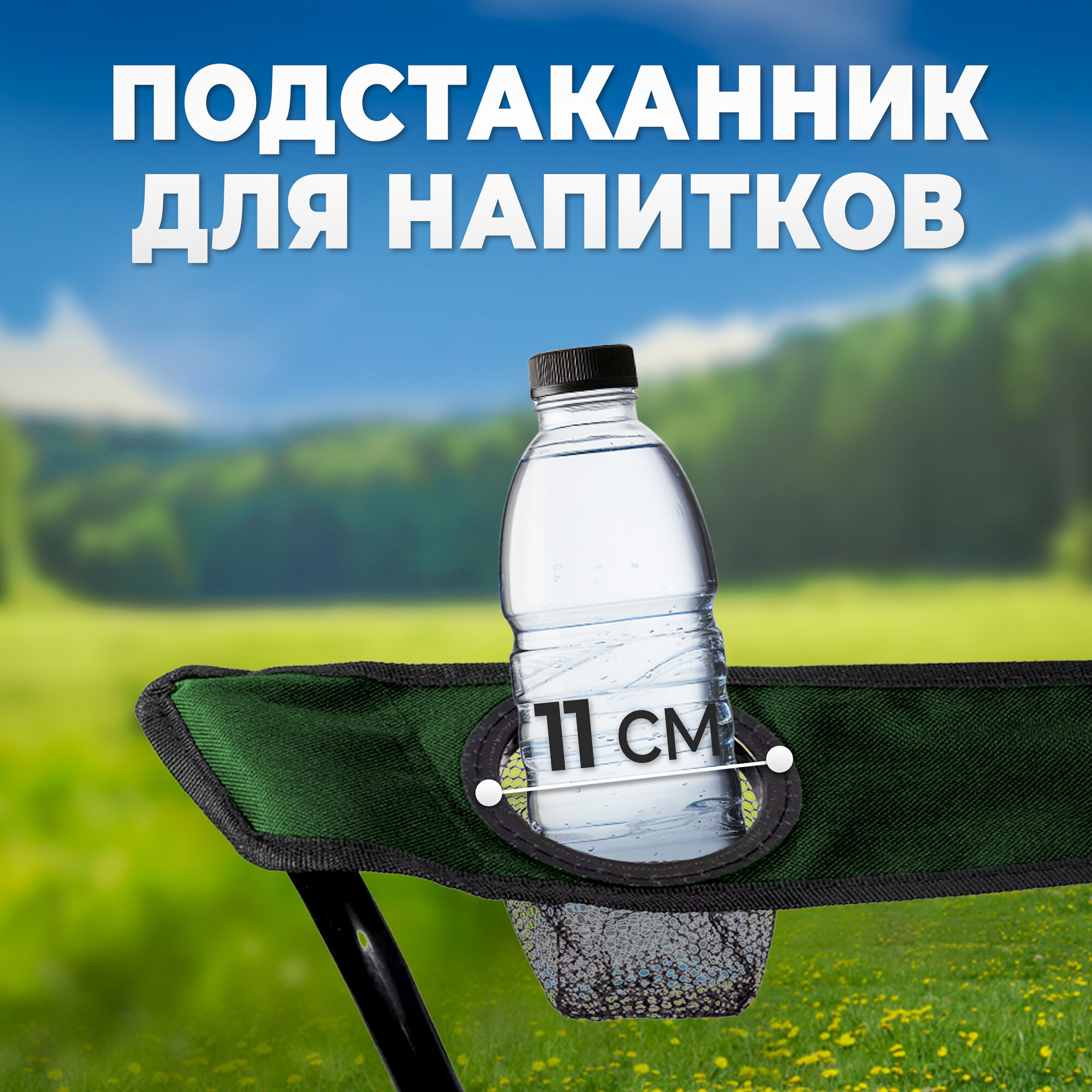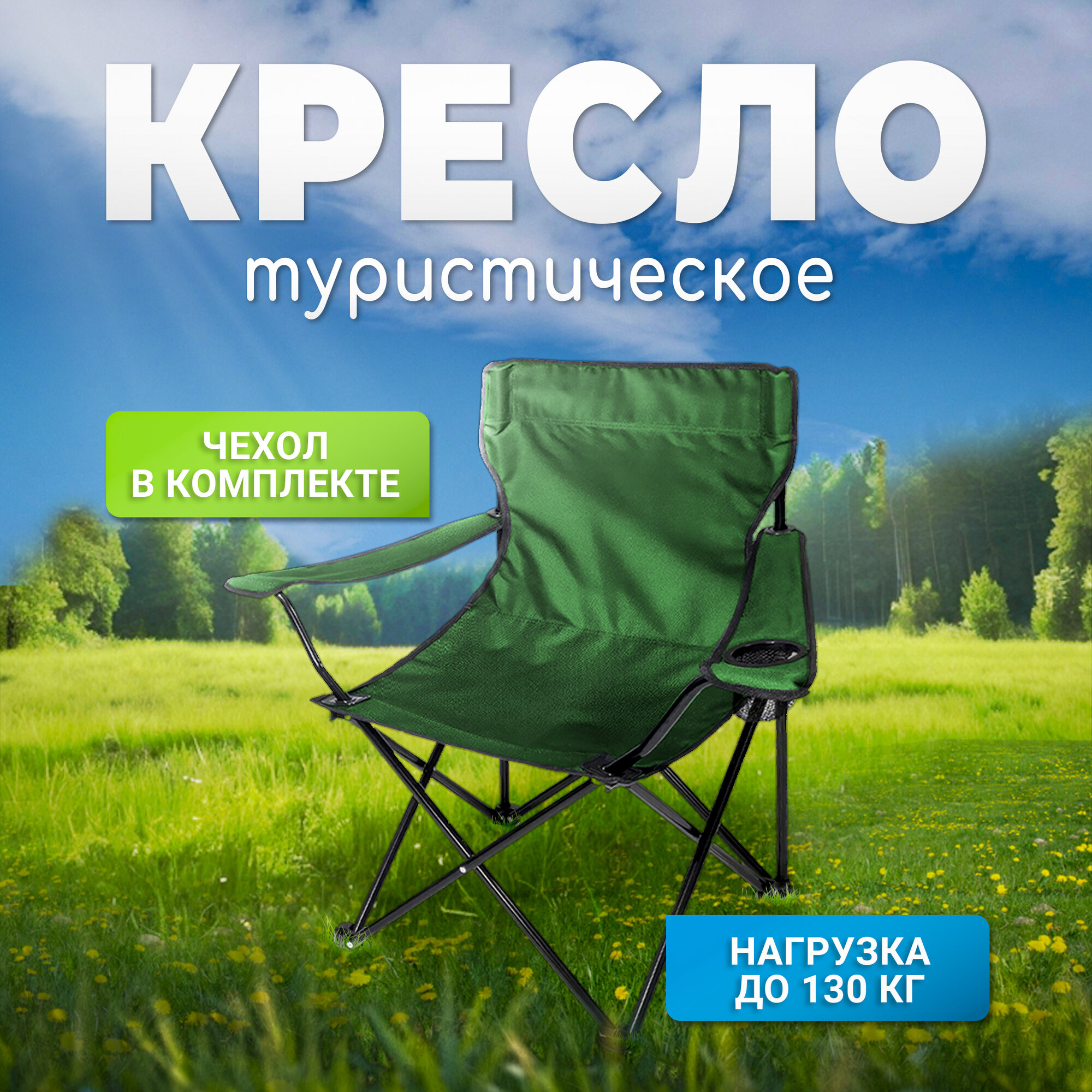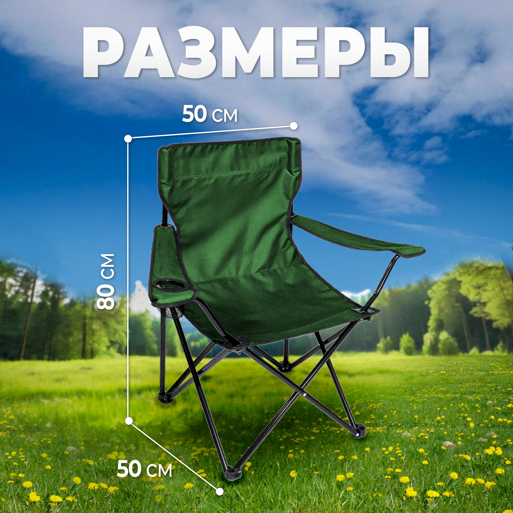 Купить Стул складной туристический со спинкой, кресло с подлокотниками и подстаканником, для кемпинга и рыбалки, зеленое