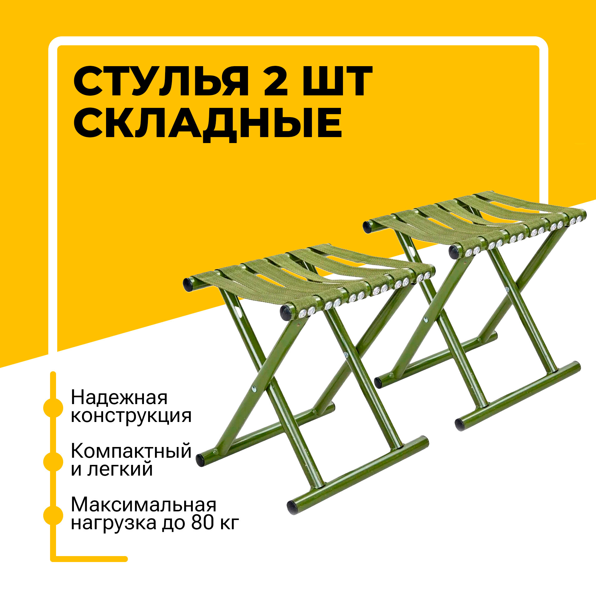 Складной стул-табурет, туристический, без спинки, для кемпинга и рыбалки, зеленый, 2 шт интересное: