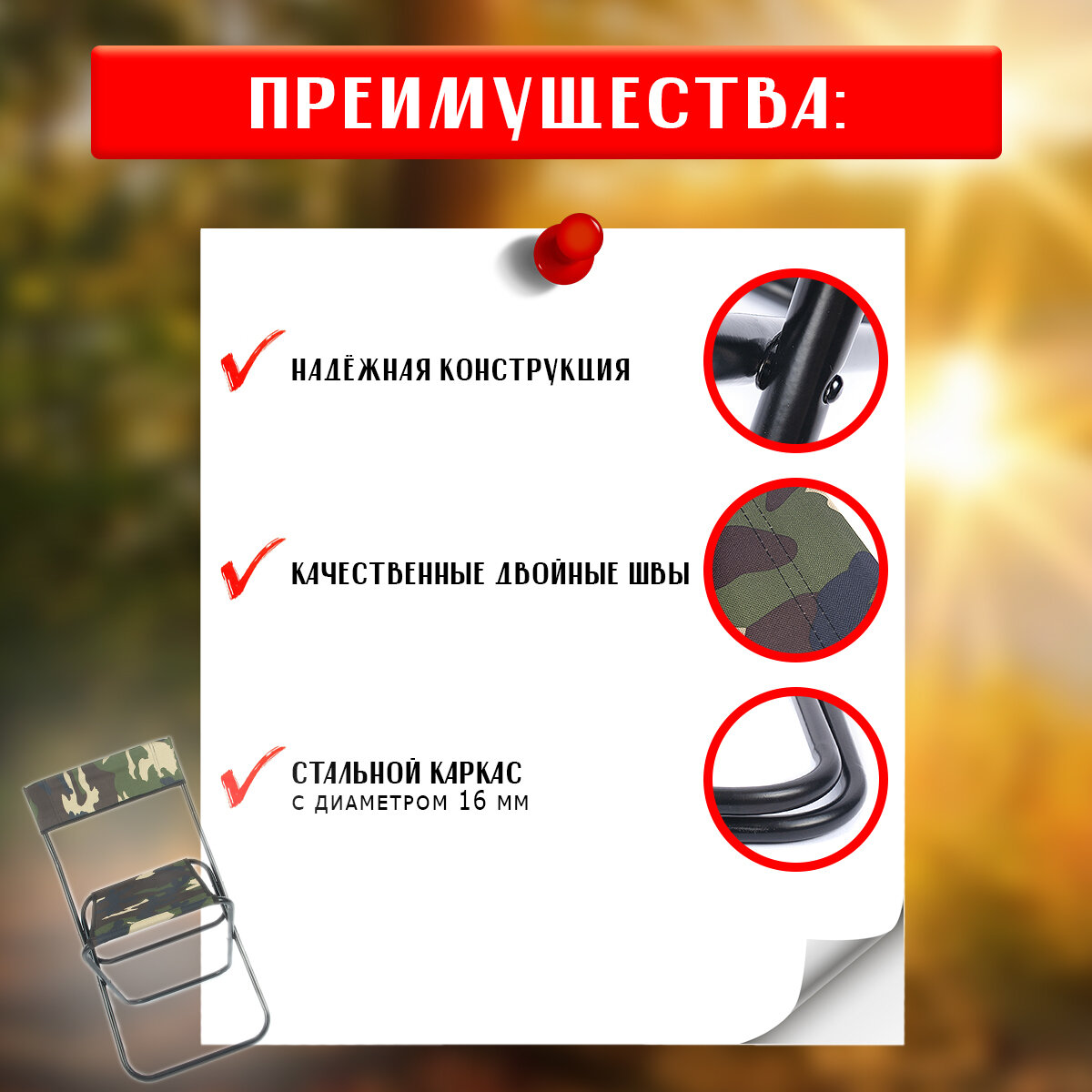 Стул складной туристический SBX SS-02 со спинкой, выдерживает нагрузку до 90 кг., цвет Камуфляж интересное: