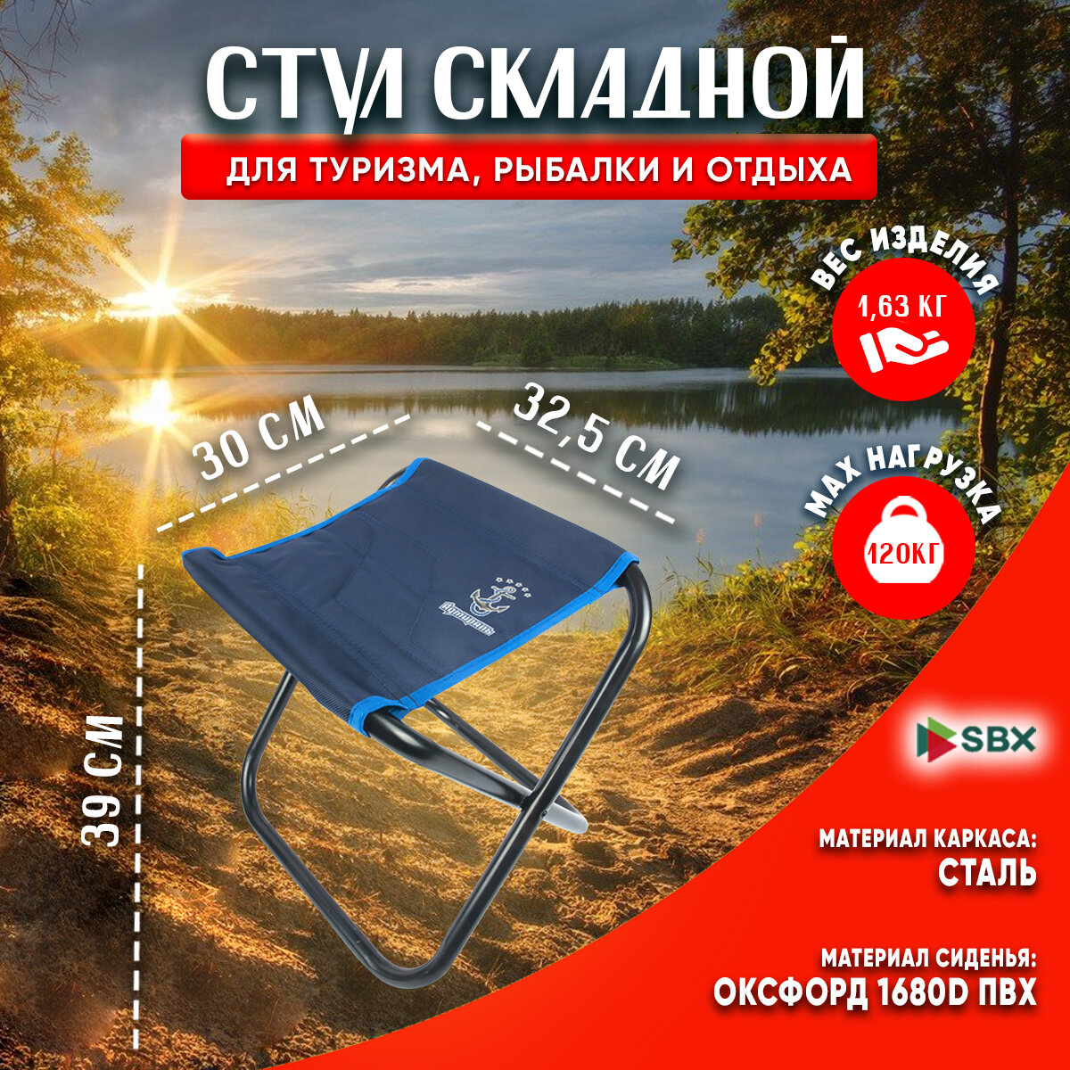 Табурет складной туристический SBX STA-02, выдерживает нагрузку до 120 кг., цвет Синий интересное: