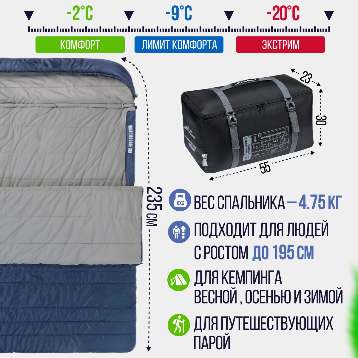Двойной спальник Trek Planet Vasto Double LUX для походов и путешествий