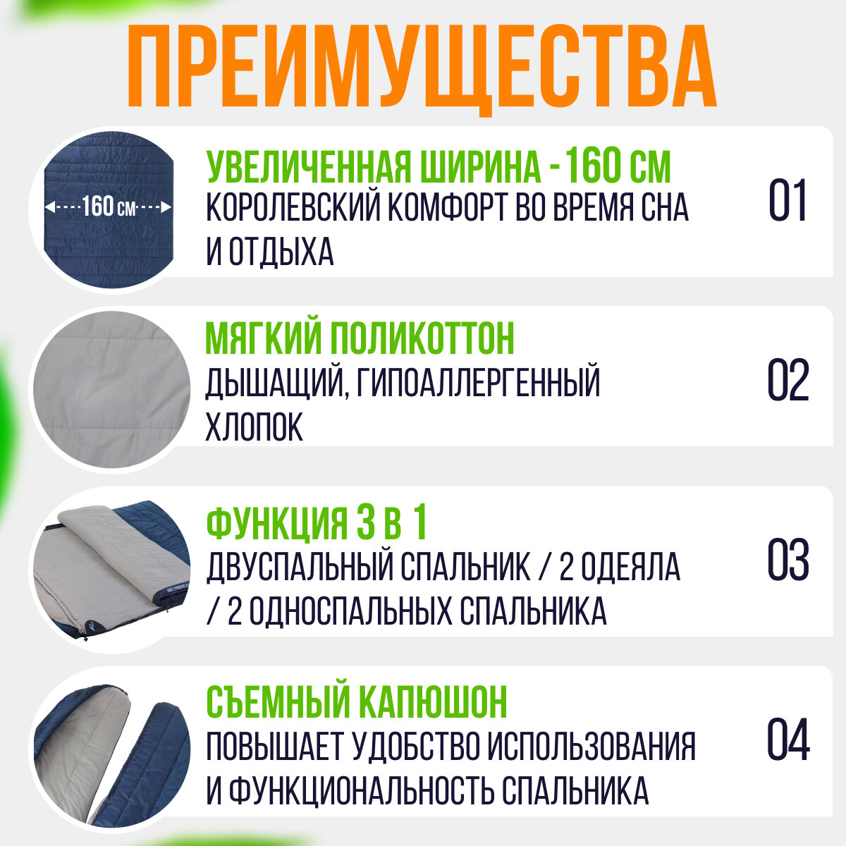 С другой стороны, он легко превращается в два односпальника! - теплый - большой/просторный - качественный - легкий |