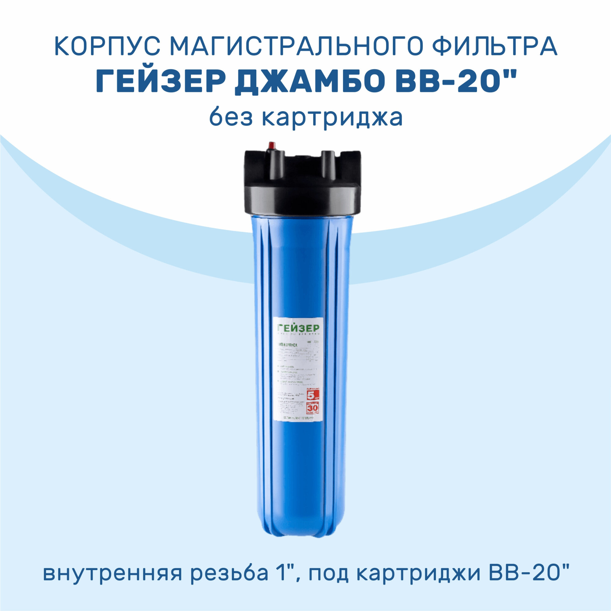СохранитьКорпус ГЕЙЗЕР 1" под картридж 20" Big Blue для холодной воды, лат. вставки интересное: