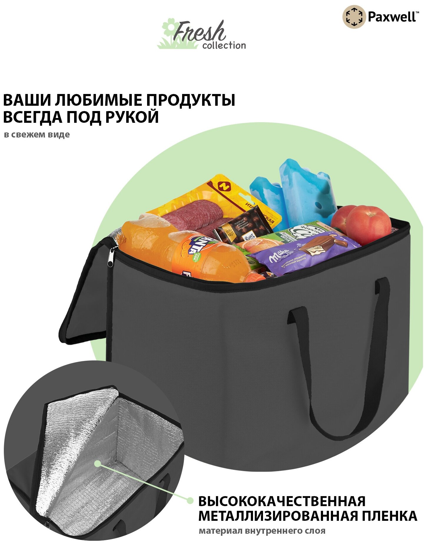 Термосумка-холодильник с ручками Paxwell Фреш 1L (35л), серый/черный интересное: