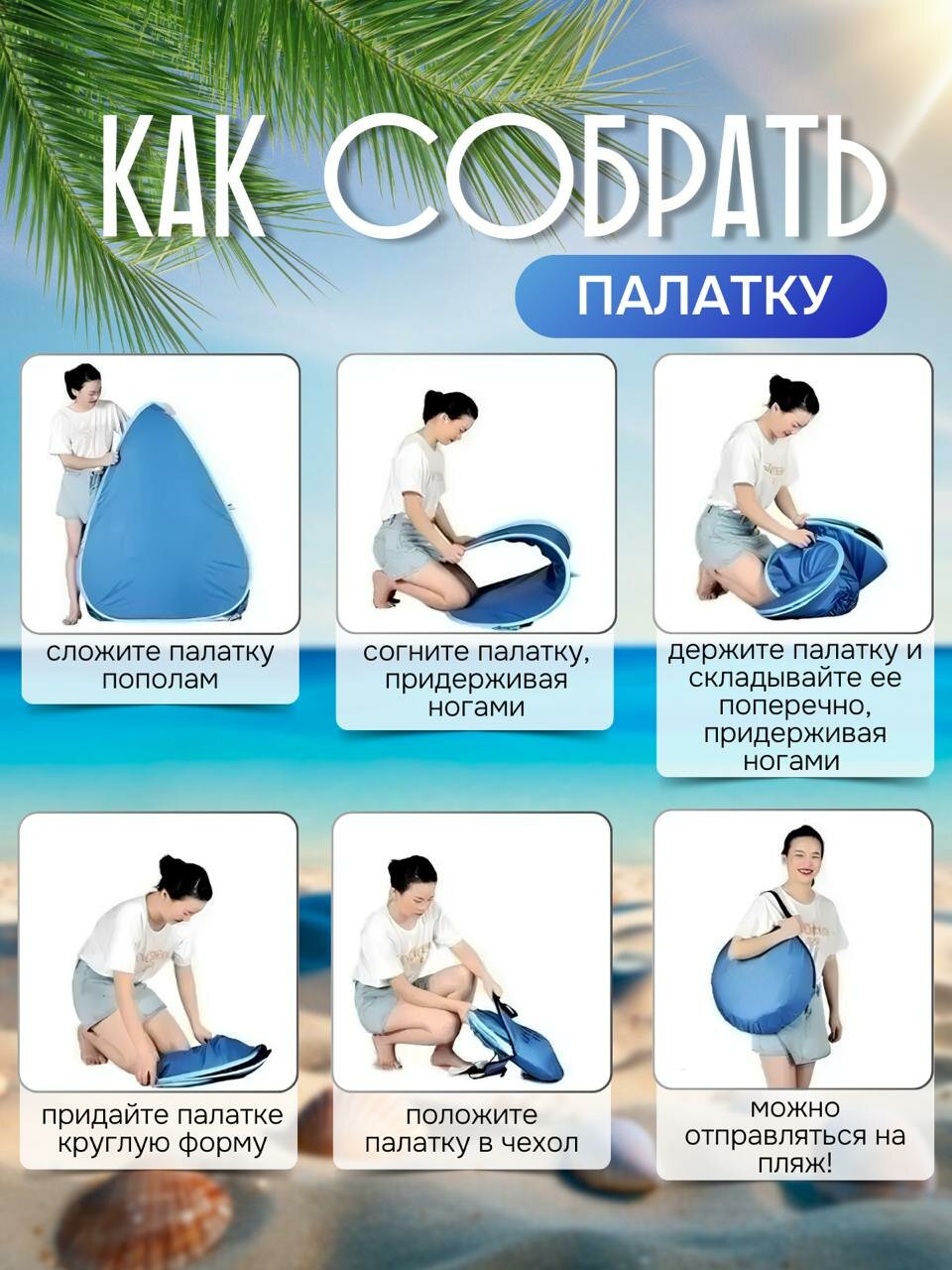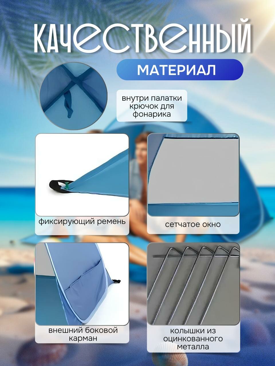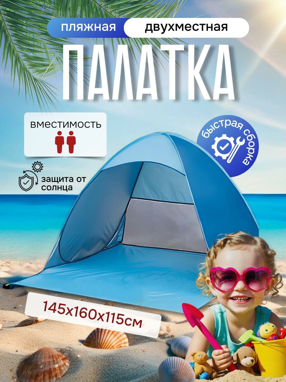 Летняя пляжная палатка тент от солнца 2-х местная автоматическая 145х160х115 см интересное: