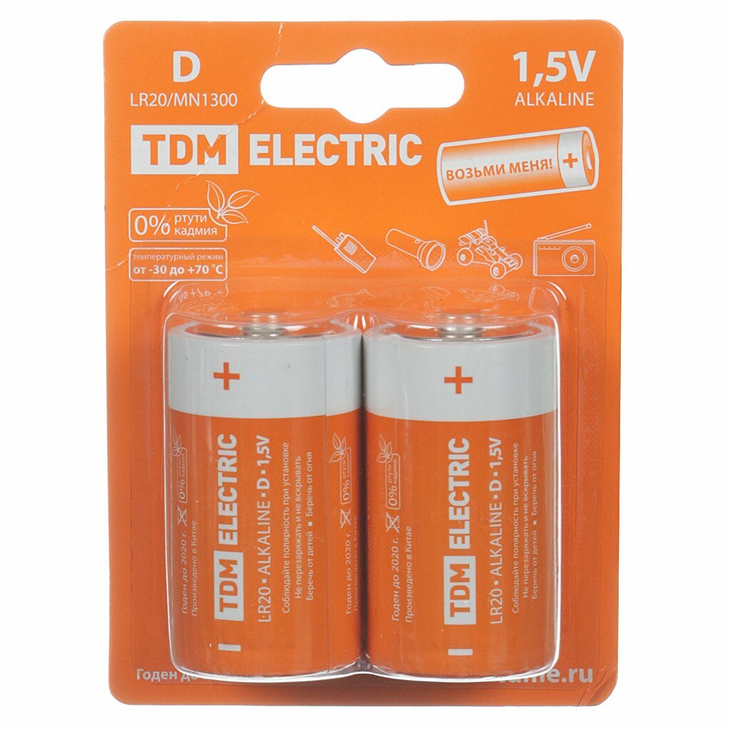 Батарейка TDM Electric, D (R20), Alkaline, алкалиновая, 1.5 В, блистер, 2 шт