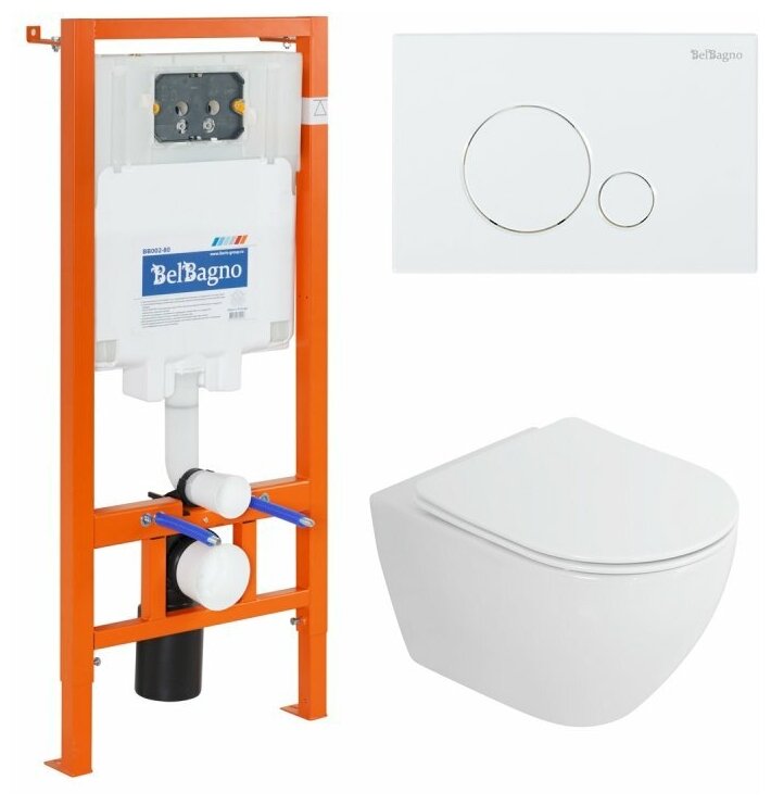 Купить Инсталляция в комплекте с унитазом BelBagno c сиденьем и кнопкой смыва CZR-6601-TH-TOR/CZR2316SC/BB002-80/BB014-SR-BIANCO